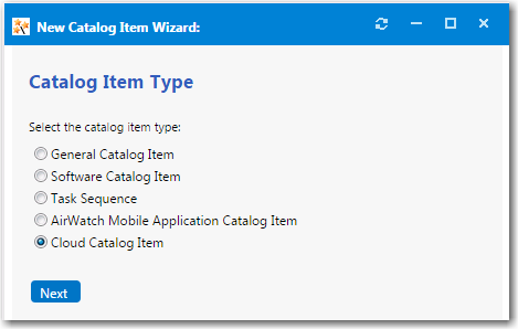 Select Cloud Catalog Item and click Next. The Cloud Account Type panel opens.