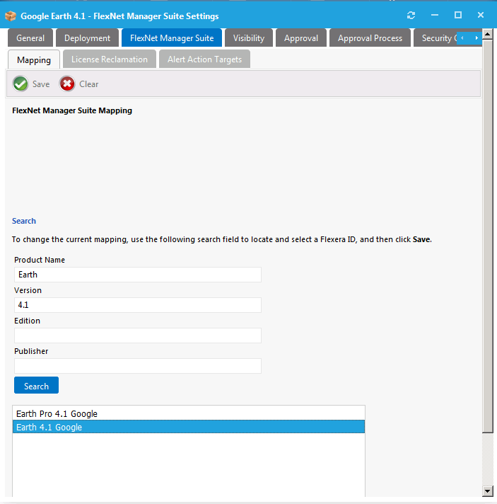 For more information, see Mapping Tab under FlexNet Manager Suite Tab.