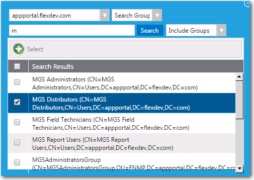 Search for the Groups or OUs/AUs you want to add and place a check mark next to the item found.