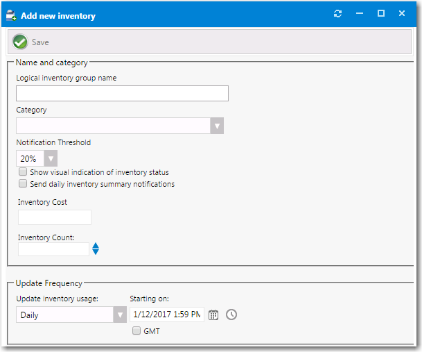 In the Category field, select the category of the new inventory item. noteFor information on creating an inventory category, see Creating a New Inventory Category.