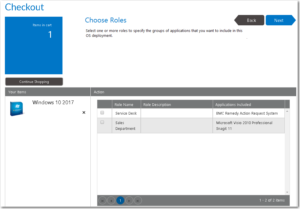• Selected—The requester is able to select roles that will determine which applications will be installed on the target computer.